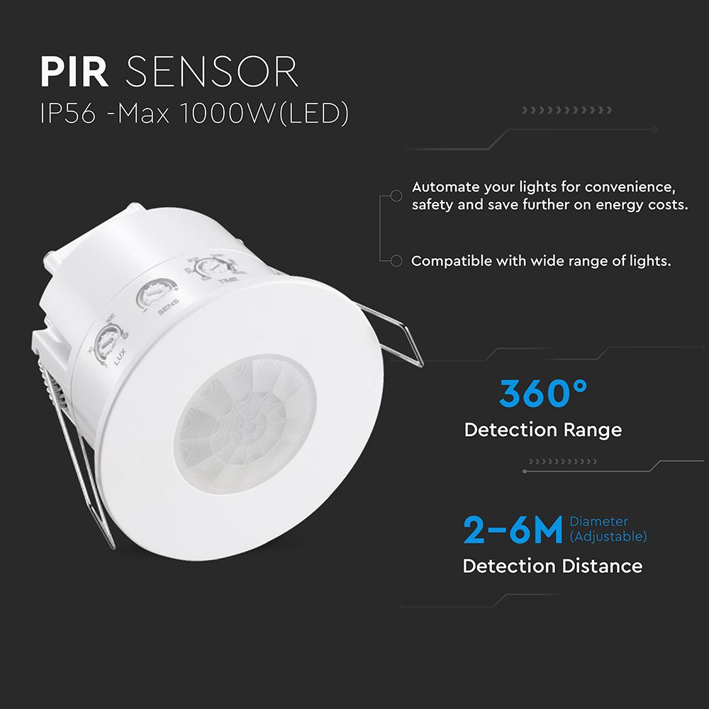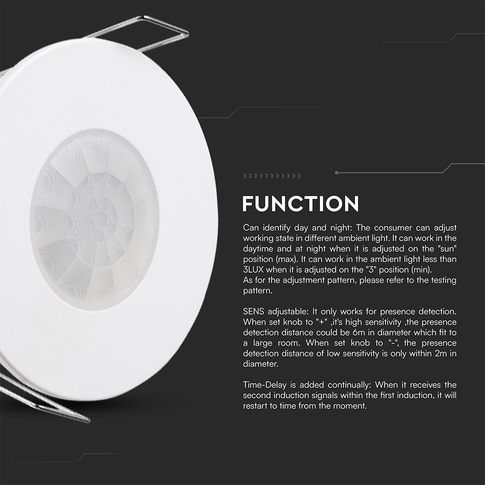 Ανιχνευτής Παρουσίας Χωνευτός Λευκός IP54 V-TAC – 24112