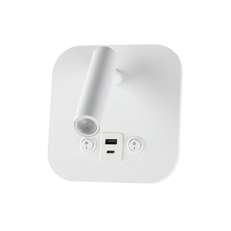 Φωτιστικό Ανάγνωσης Κρεβατιού Ξενοδοχείου V-TAC LED Σπότ & Οπίσθιο Φωτισμό Λευκό με Διακόπτη & Θύρες Φόρτισης USB 830lm 3000K – 240026