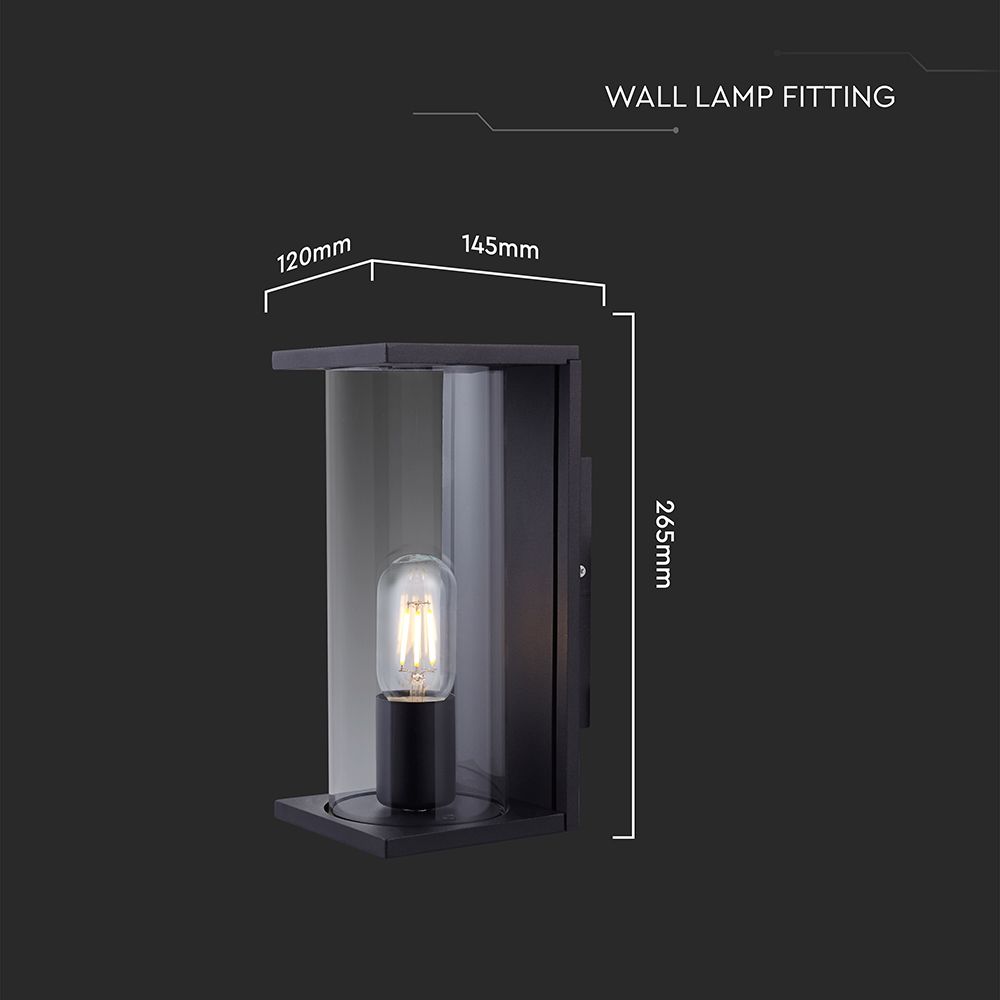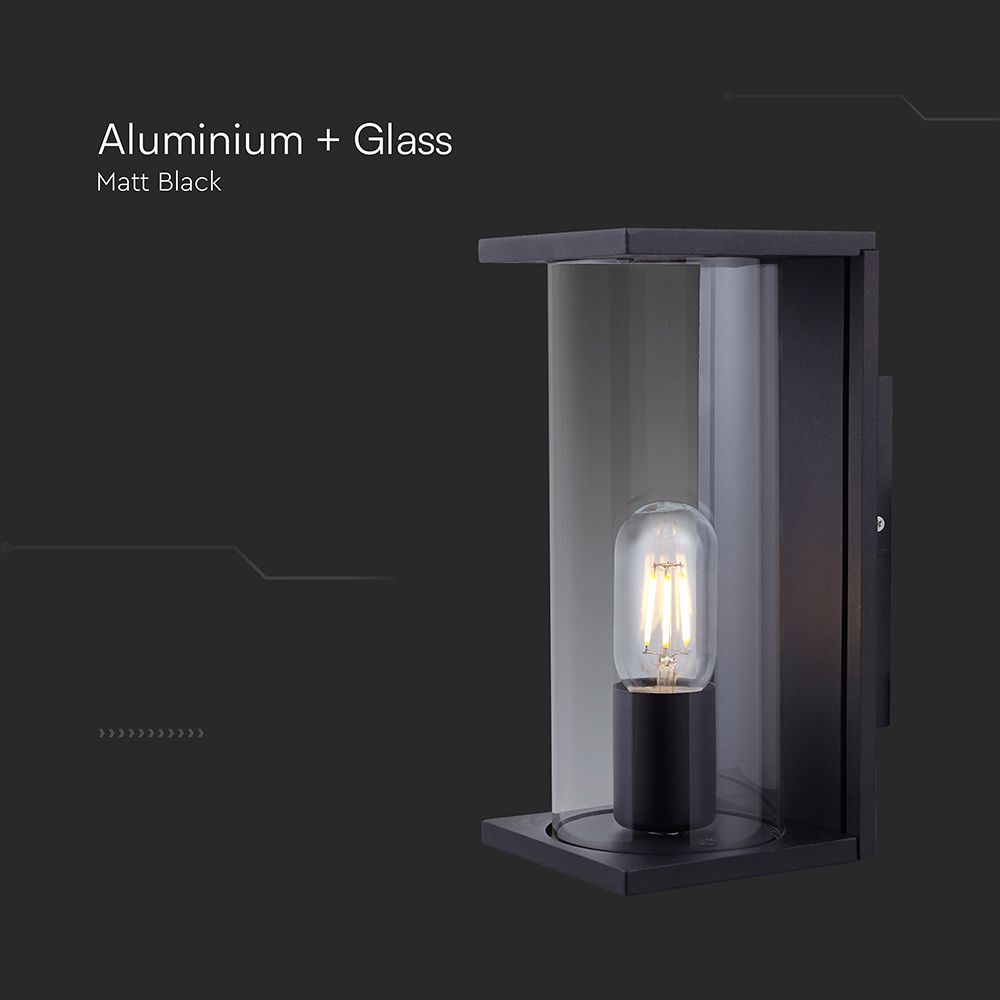 Φωτιστικό Τοίχου Κήπου Βεράντας 1xE27 Μαύρο με Διάφανο Γυαλί IP44 V-TAC – 24087