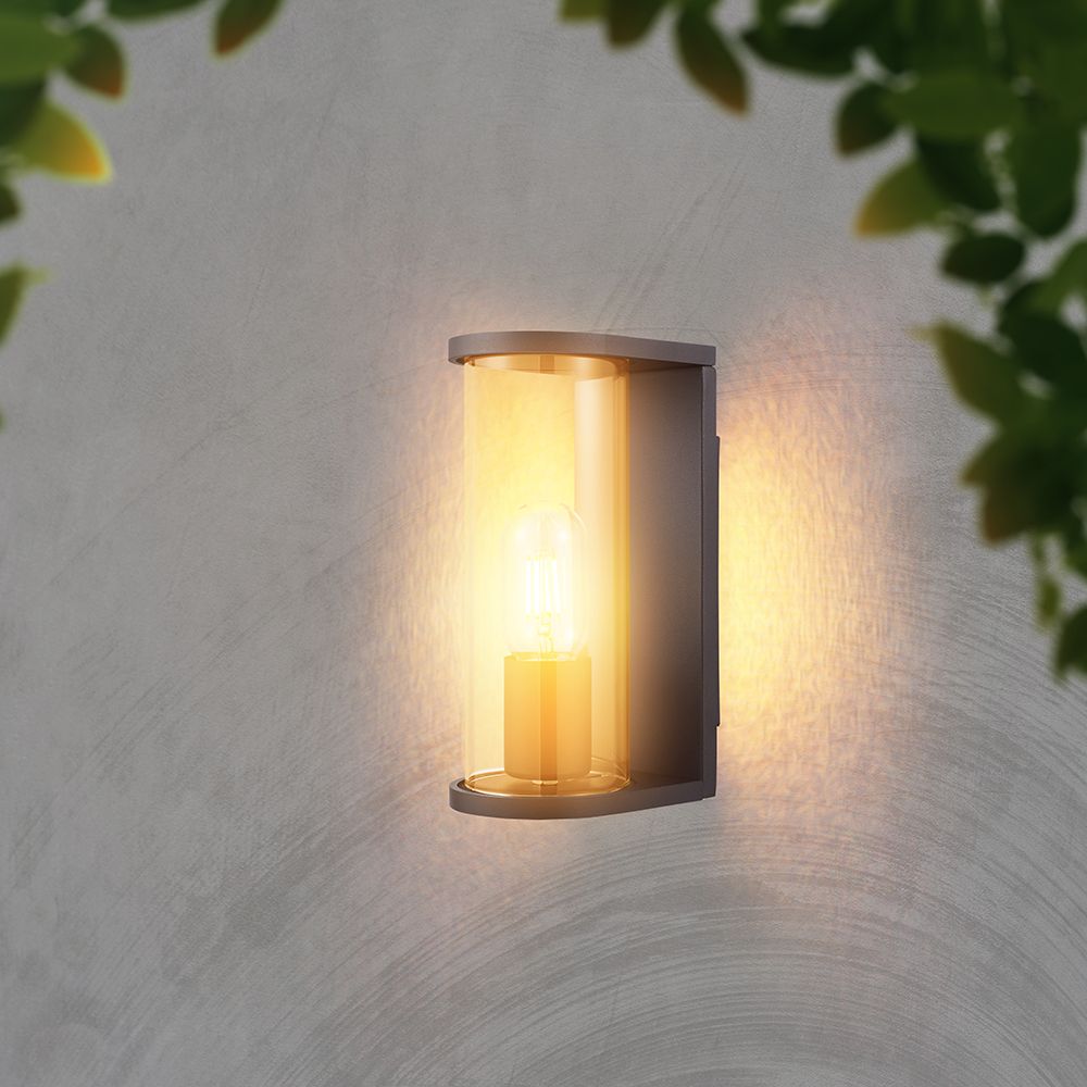 Αυτό το φωτιστικό τοίχου είναι ιδανικό για να προσφέρει φωτισμό σε εξωτερικούς χώρους, όπως κήπους, βεράντες ή μπαλκόνια. Η φιμέ γυάλινη κατασκευή του προσφέρει μια αίσθηση κομψότητας, ενώ ταυτόχρονα εξασφαλίζει ότι η φωτεινότητα παραμένει ευχάριστη και χαλαρωτική. Η πιστοποίηση IP44 σημαίνει ότι μπορείτε να το χρησιμοποιείτε χωρίς ανησυχίες για την υγρασία ή την βροχή, καθιστώντας το ιδανικό για όλες τις εποχές.