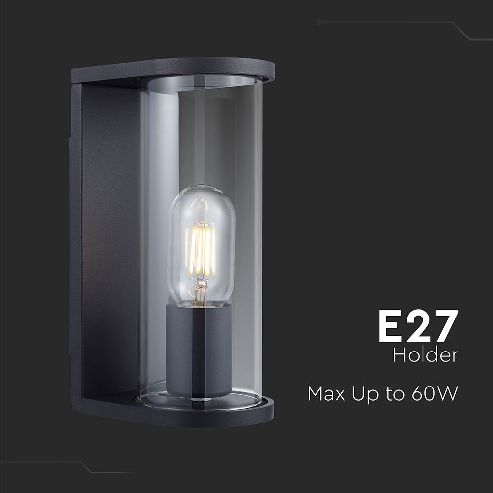 Επιλέξτε το Φωτιστικό Τοίχου Κήπου Βεράντας Οβάλ 1 x E27 Μαύρο με Φιμέ Γυαλί IP44 V-TAC – 24088 και απολαύστε την ιδανική ατμόσφαιρα στον εξωτερικό σας χώρο! 💡✨