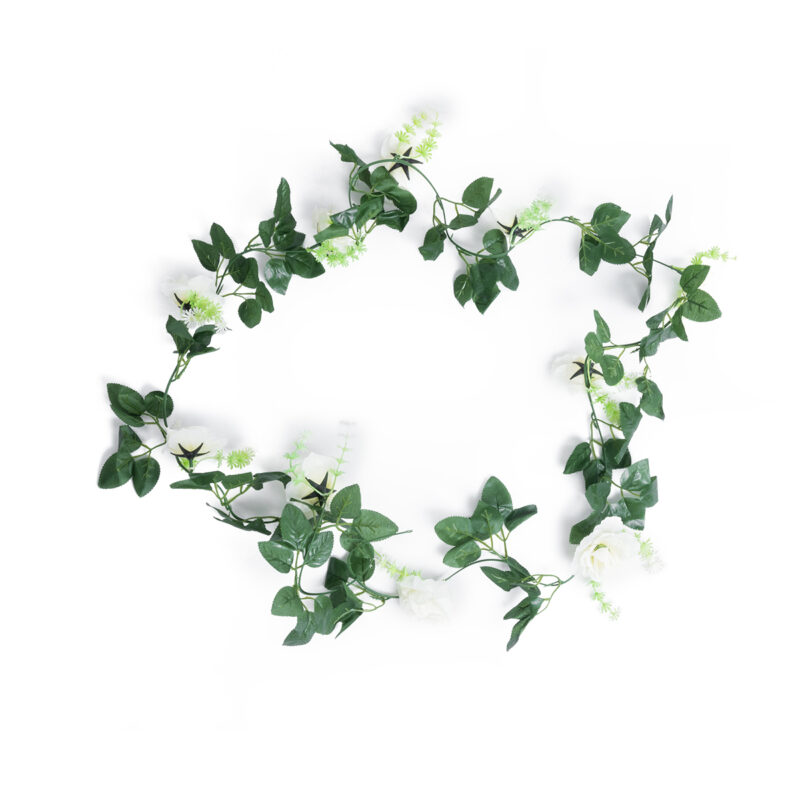 GloboStar® 78131 Τεχνητό Κρεμαστό Φυτό Διακοσμητική Γιρλάντα Λουλουδιών με 10 Λευκά Τριαντάφυλλα & Πράσινο Φύλλωμα Μ12 x Π12 x Υ220cm