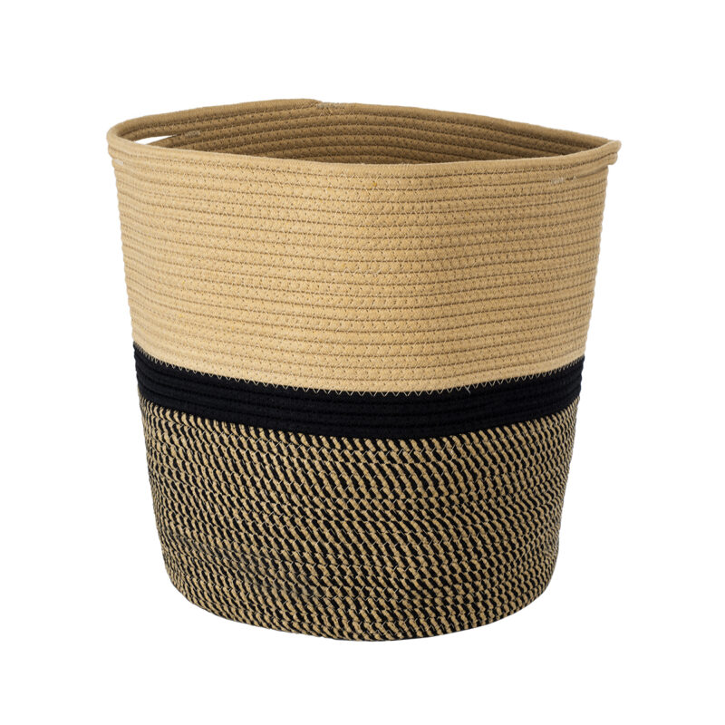 GloboStar® Artificial Garden HYDRA 20204 Διακοσμητικό Πλεκτό Καλάθι – Κασπώ Γλάστρα – Flower Pot Μπεζ με Μαύρο Π35cm x Υ38cm