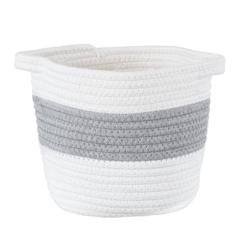 GloboStar® Artificial Garden KEFALONIA 20321 Διακοσμητικό Πλεκτό Καλάθι - Κασπώ Γλάστρα - Flower Pot Γκρι με Λευκό Φ20cm x Υ20cm