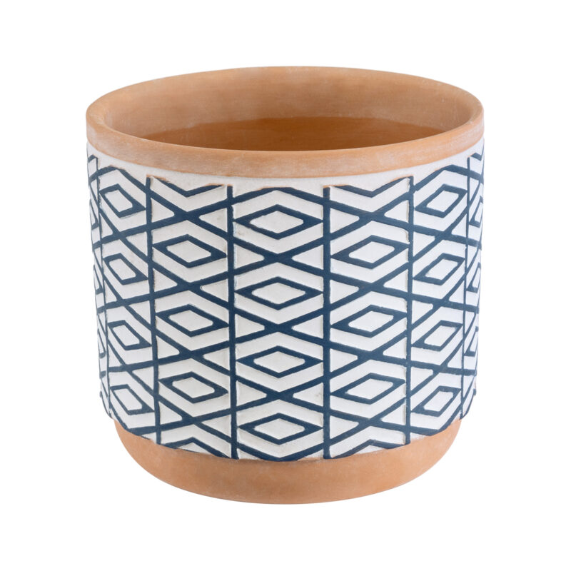 GloboStar® Artificial Garden KOLKATA 20525 Διακοσμητικό Κεραμικό Κασπώ Γλάστρα – Flower Pot Λευκό με Μπλε και Μπεζ Φ14.5 x Υ13cm