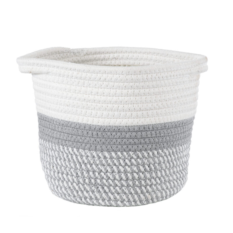 GloboStar® Artificial Garden POSITANO 20318 Διακοσμητικό Πλεκτό Καλάθι – Κασπώ Γλάστρα – Flower Pot Γκρι με Λευκό Φ20cm x Υ20cm