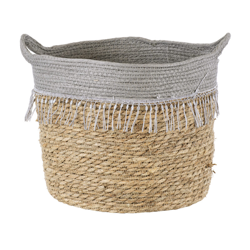 GloboStar® Artificial Garden SYROS 20283 Διακοσμητικό Πλεκτό Καλάθι – Κασπώ Γλάστρα – Flower Pot Μπεζ με Γκρι Φ28cm x Υ24cm