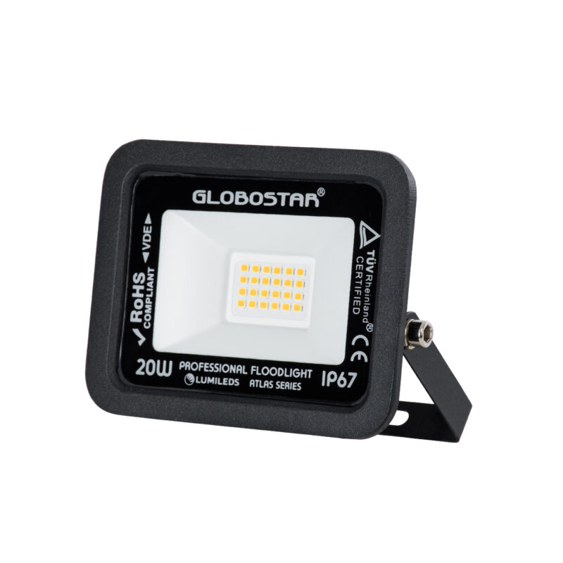 GloboStar® ATLAS 61412 Επαγγελματικός Προβολέας LED 20W 2300lm 120° AC 220-240V – Αδιάβροχος IP67 – Μ12 x Π2.5 x Υ9.5cm – Μαύρο – Θερμό Λευκό 2700K – LUMILEDS Chips – TÜV Rheinland Certified – 5 Years Warranty