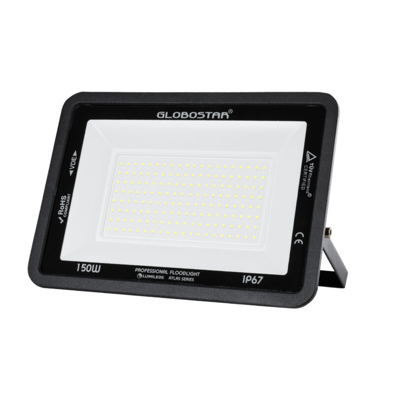 GloboStar® ATLAS 61428 Επαγγελματικός Προβολέας LED 150W 18750lm 120° AC 220-240V – Αδιάβροχος IP67 – Μ32 x Π4 x Υ23cm – Μαύρο – Ψυχρό Λευκό 6000K – LUMILEDS Chips – TÜV Rheinland Certified – 5 Years Warranty