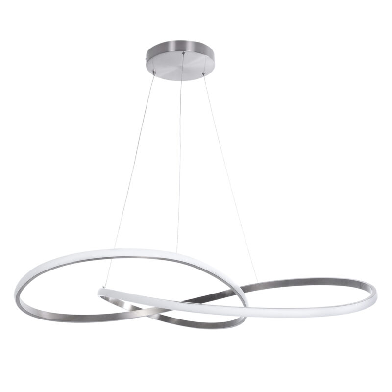GloboStar® DEXTER 60919 Κρεμαστό Φωτιστικό Οροφής Design LED CCT 120W 13440lm 300° AC 220-240V – Εναλλαγή Φωτισμού μέσω Τηλεχειριστηρίου All In One Ψυχρό 6000k+Φυσικό 4500k+Θερμό 2700k Dimmable Φ103cm – Νίκελ Βούρτσας – 3 Years Warranty