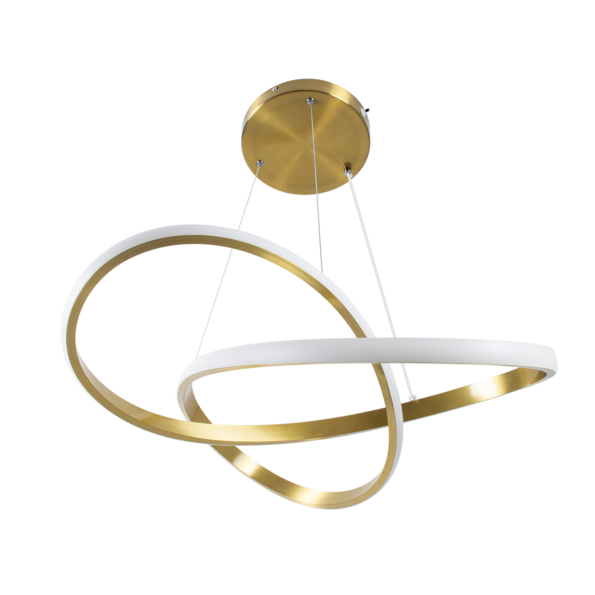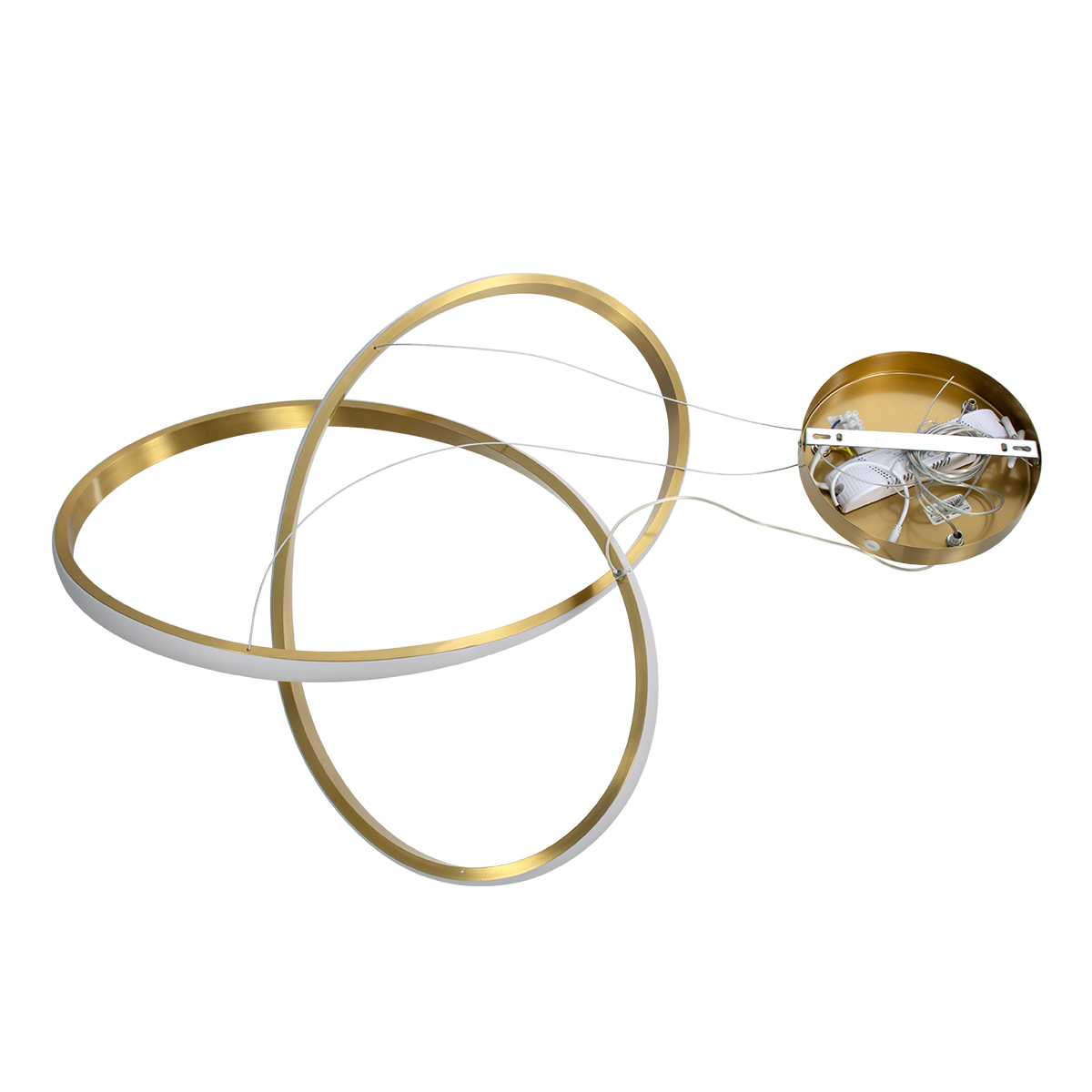 GloboStar® DEXTER 61051 Κρεμαστό Φωτιστικό Οροφής Design LED CCT 72W 8064lm 300° AC 220-240V – Εναλλαγή Φωτισμού μέσω Τηλεχειριστηρίου All In One Ψυχρό 6000k+Φυσικό 4500k+Θερμό 2700k Dimmable Φ56cm – Χρυσό Βούρτσας – 3 Years Warranty