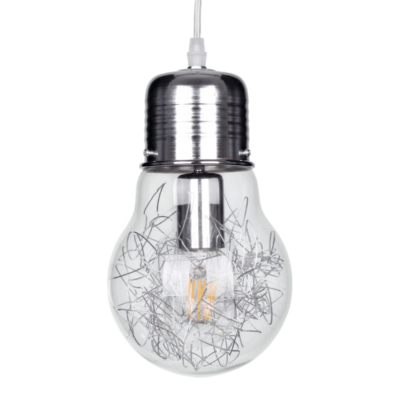 GloboStar® LAMP 01676 Μοντέρνο Κρεμαστό Φωτιστικό Οροφής Μονόφωτο 1 x E27 Ασημί Νίκελ Μεταλλικό Διάφανο Γυαλί Φ15 x Υ27cm