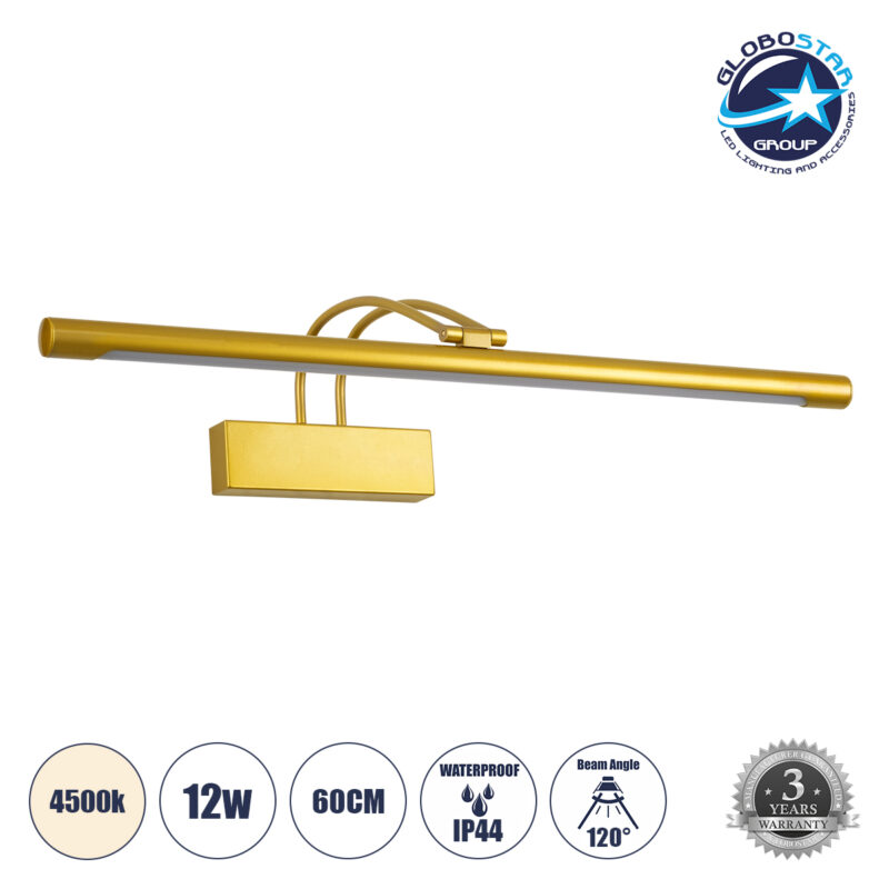GloboStar® LAURA 60425 Μοντέρνο Φωτιστικό Τοίχου – Απλίκα Καθρέπτη Μπάνιου – Πίνακα LED 12W 1400lm 120° AC 220-240V IP44 Μ60 x Π27 x Υ13cm – Φυσικό Λευκό 4500K – Χρυσό – 3 Years Warranty