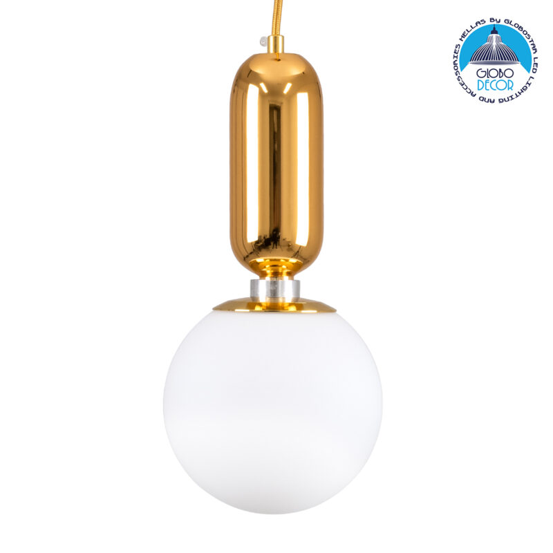 GloboStar® MAVERICK 00943 Μοντέρνο Κρεμαστό Φωτιστικό Οροφής Μονόφωτο 1 x E27 Χρυσό Μεταλλικό Γυάλινο Μπάλα Φ15 x Υ33cm