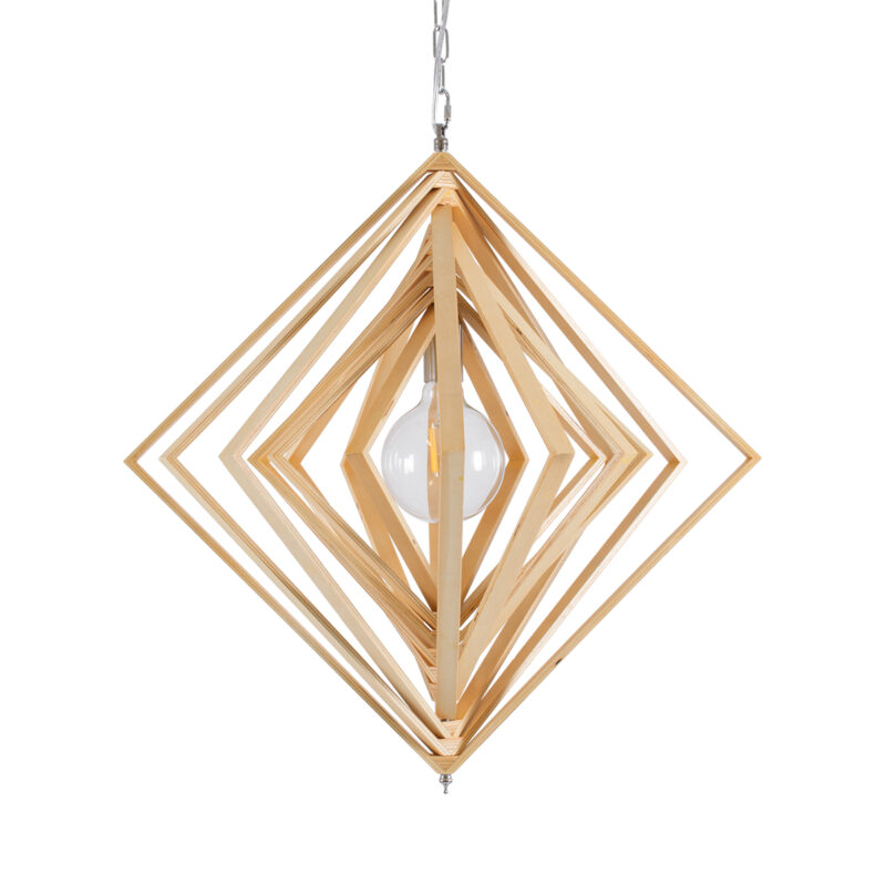 GloboStar® OCTAVE 01431 Μοντέρνο Κρεμαστό Φωτιστικό Οροφής Μονόφωτο 1 x E27 Μπεζ Ξύλινο Μ64 x Π64 x Y66cm