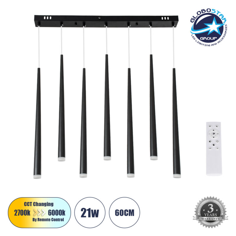 GloboStar® TEARS 61311 Κρεμαστό Φωτιστικό Οροφής Design LED CCT 21W 2310lm 180° AC 220-240V – Εναλλαγή Φωτισμού μέσω Τηλεχειριστηρίου All In One Ψυχρό 6000k+Φυσικό 4500k+Θερμό 2700k Dimmable Μ70 x Π3.2 x Υ60cm – Μαύρο – 3 Years Warranty