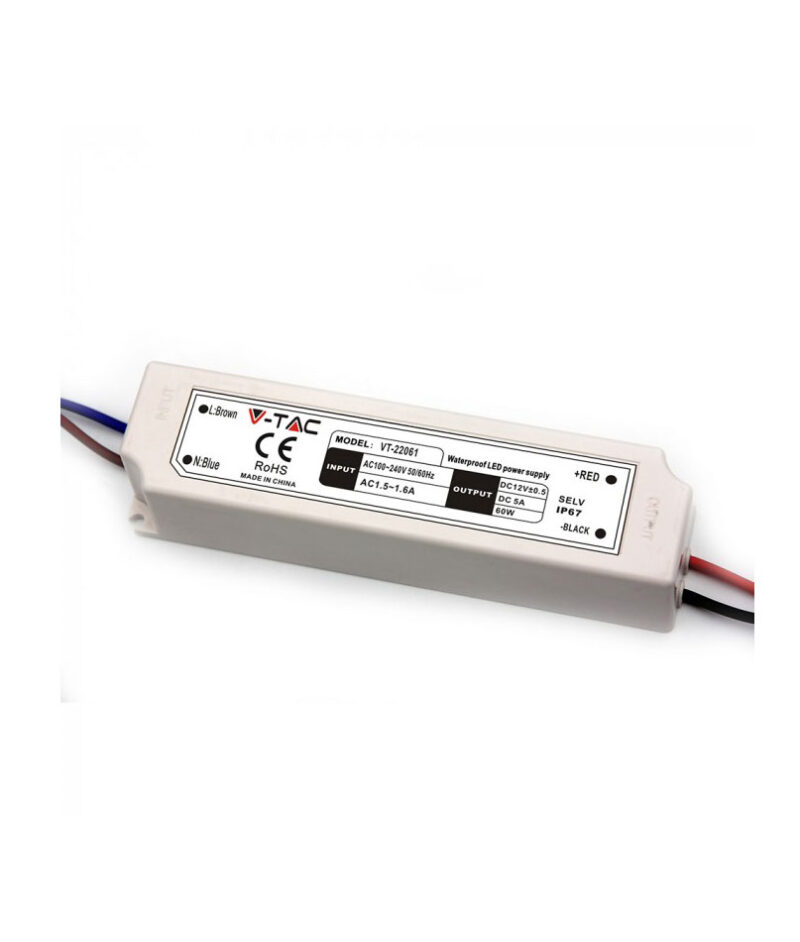 Τροφοδοτικό για LED 60W 12V Αδιάβροχο IP67 Πλαστικό V-TAC – 3234