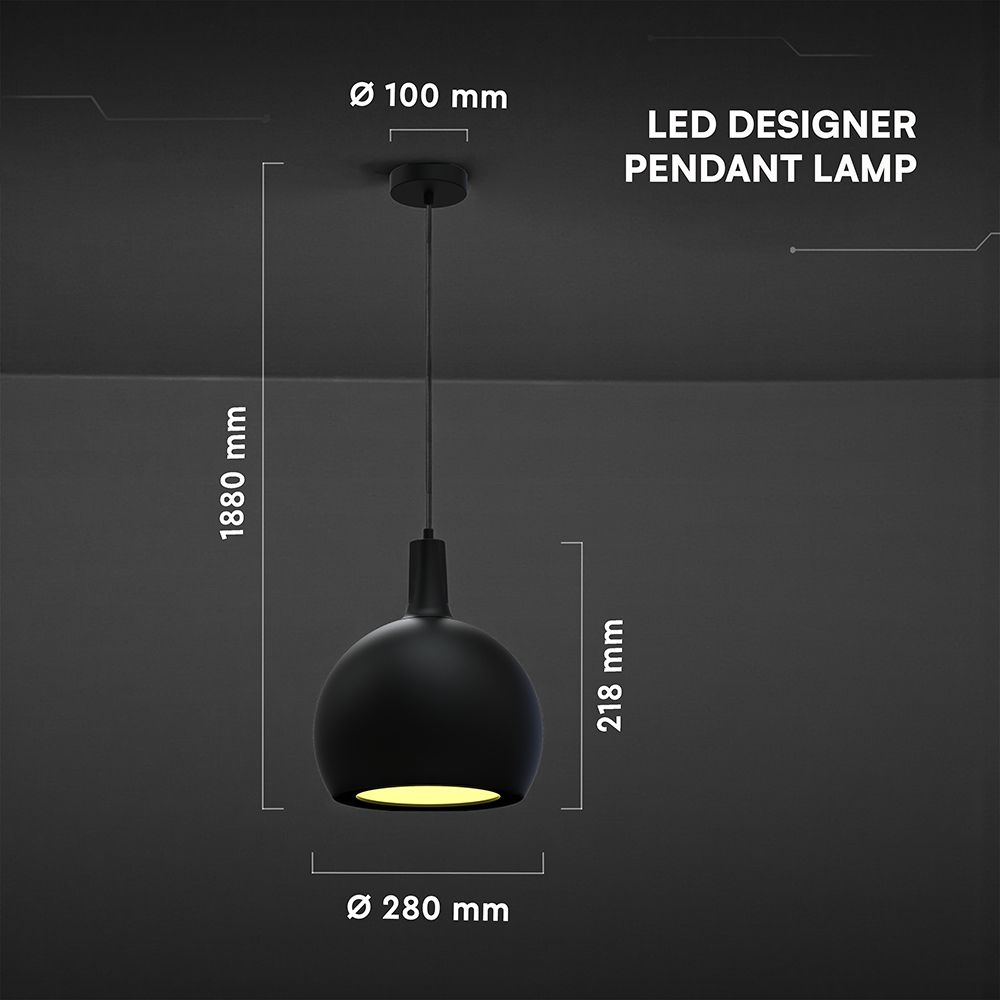 Το V-TAC E27 280×218 mm Pendant Luminaire (Μαύρο Σώμα) είναι ένα κομψό διακοσμητικό κρεμαστό φωτιστικό οροφής με στάνταρ υποδοχή λαμπτήρα E27, σχεδιασμένο για να προσθέσει λεπτό, μοντέρνο φωτισμό στον εσωτερικό σας χώρο.