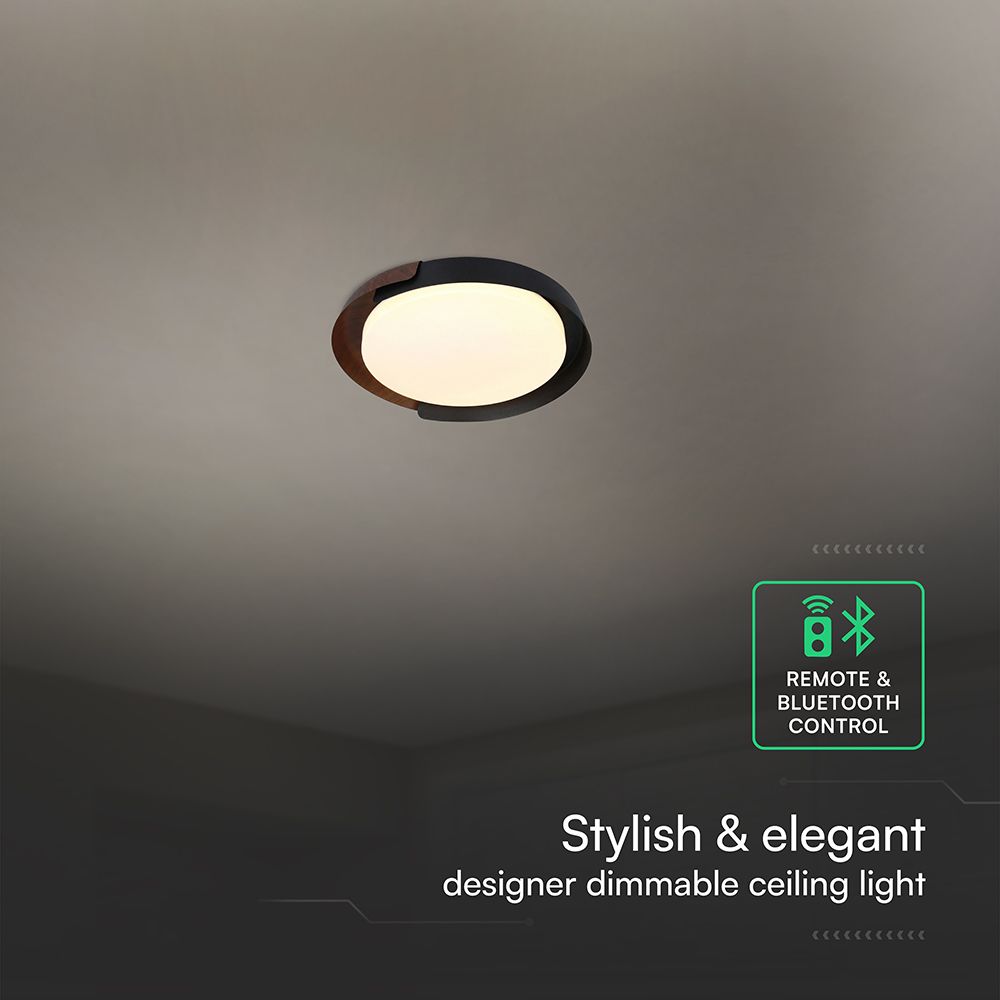 Το V‑TAC 24186VT  είναι ένα υψηλής αισθητικής LED Decorative Ceiling Lamp 48W, σχεδιασμένο για όσους θέλουν συνδυασμό μοντέρνου design, φυσικής υφής και ευέλικτου φωτισμού. Η λειτουργία 3in1 CCT (3000K – 4000K – 6500K) επιτρέπει την αλλαγή θερμοκρασίας χρώματος ανάλογα με τη διάθεση και τη χρήση του χώρου, ενώ το dimmable σύστημα λειτουργεί τόσο με τηλεχειριστήριο όσο και μέσω της εφαρμογής Lamp Smart Pro.
