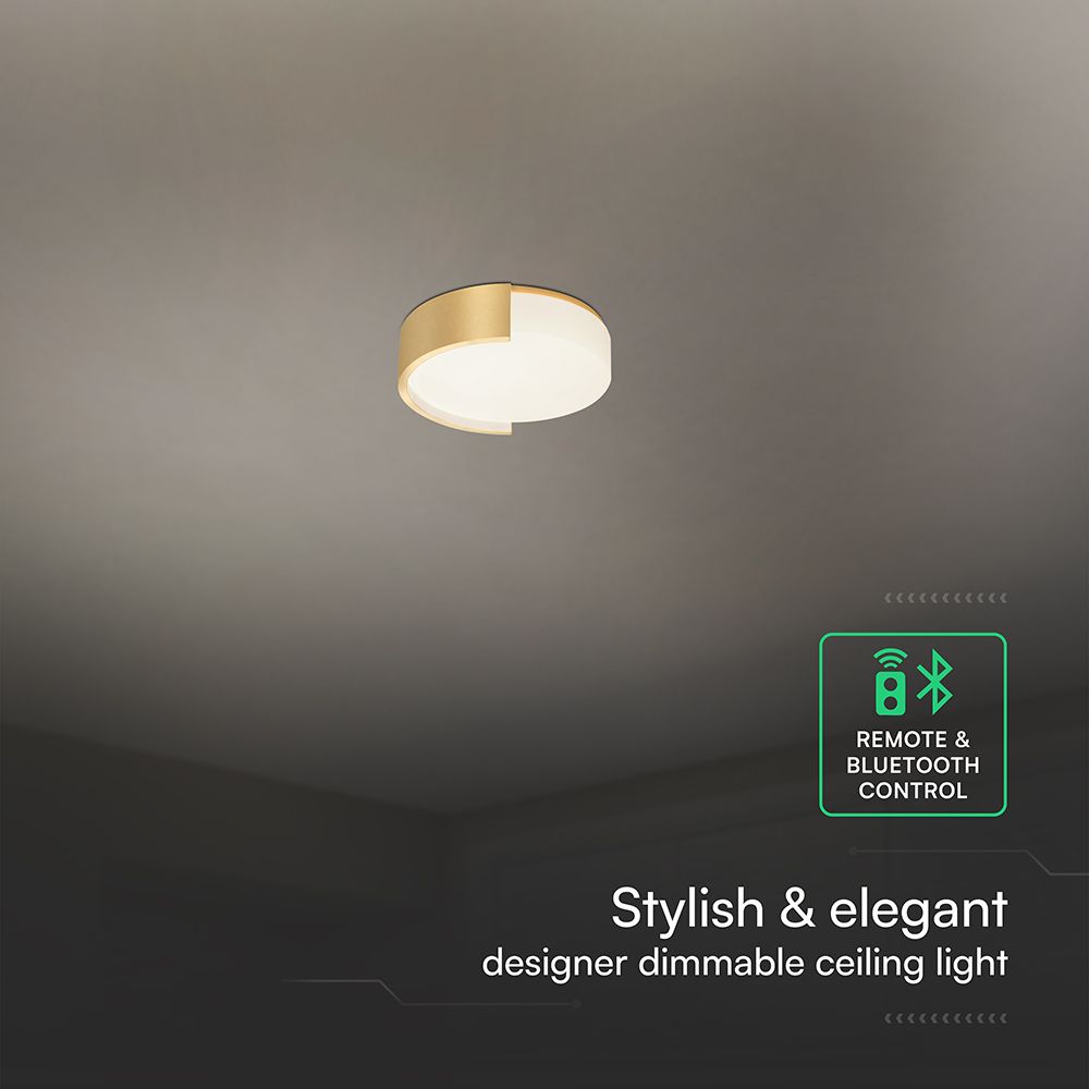 Το V‑TAC 24190VT είναι ένα premium LED ceiling lamp 48W με 3in1 CCT (3000K/4000K/6500K), dimming μέσω τηλεχειριστηρίου και εφαρμογής Lamp Smart Pro. Με φωτεινότητα 5760lm και elegant gold design, αποτελεί ιδανική επιλογή για σαλόνια, υπνοδωμάτια, ξενοδοχεία και επαγγελματικούς χώρους.