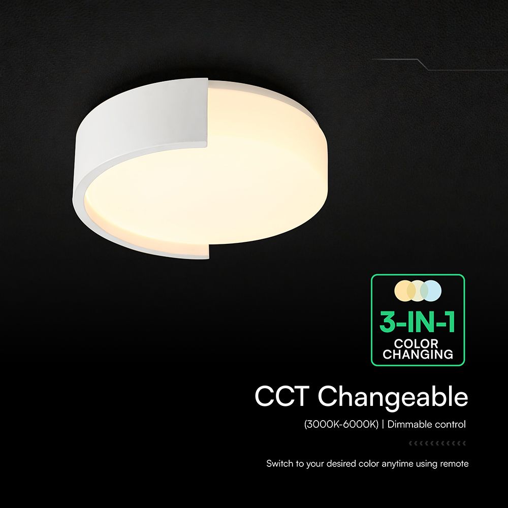 Το V‑TAC 24192VT  είναι ένα υψηλής αισθητικής LED Decorative Ceiling Lamp 63W, σχεδιασμένο για όσους αναζητούν ισχυρό φωτισμό, μοντέρνο design και πλήρη έλεγχο φωτισμού. Η λειτουργία 3in1 CCT (3000K – 4000K – 6500K) επιτρέπει την αλλαγή θερμοκρασίας χρώματος ανάλογα με τη διάθεση και τη χρήση του χώρου, ενώ το dimmable σύστημα λειτουργεί τόσο με τηλεχειριστήριο όσο και μέσω της εφαρμογής Lamp Smart Pro.