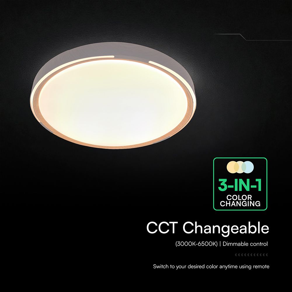 V-TAC 24206 LED Πλαφονίερα Οροφής Στρογγυλή Φ500 30W/60W 6000lm Dimmable CCT με Τηλεχειριστήριο σε Απόχρωση Ξύλου